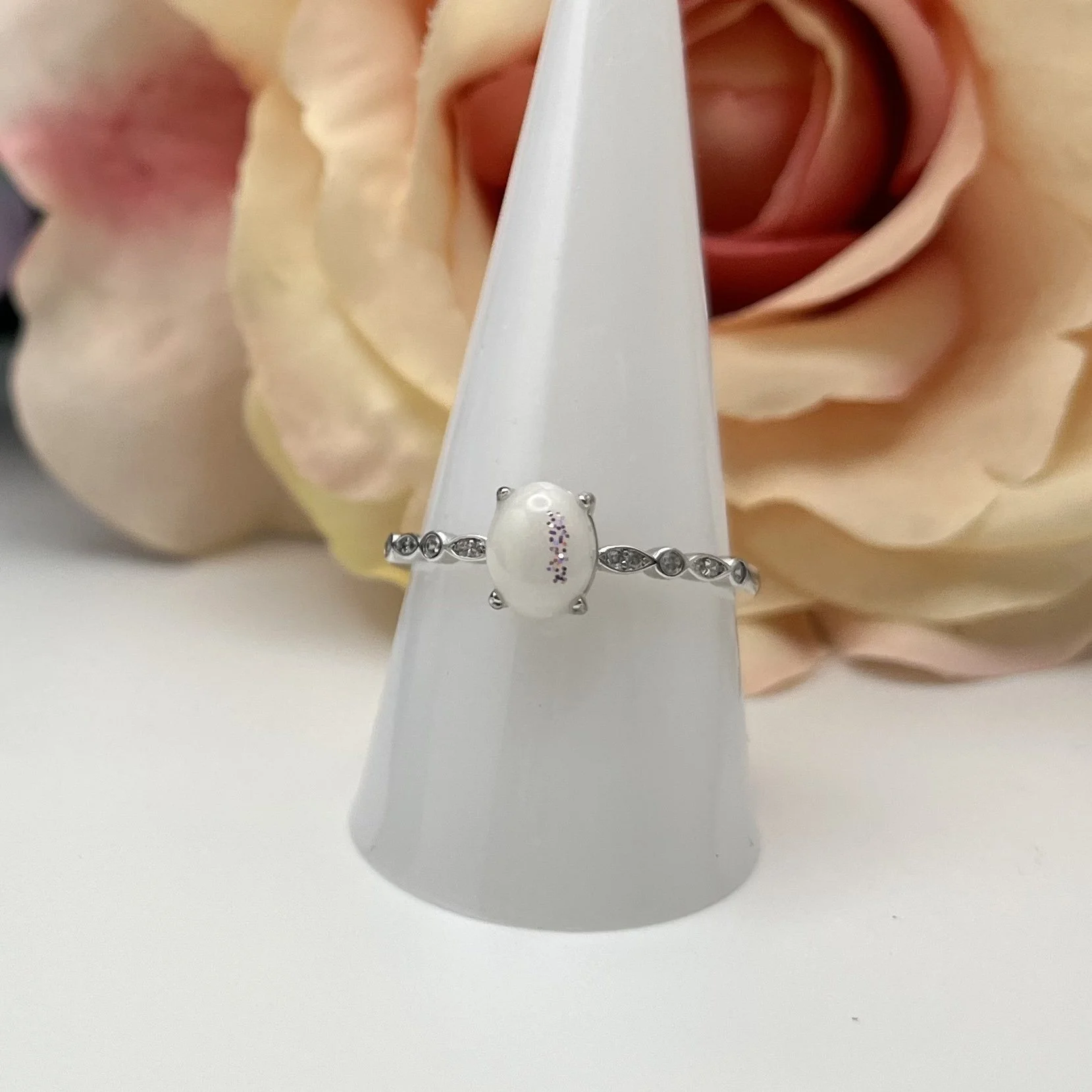 Beautiful vintage style band. Please enter ring size in the box that appears before checkout. Center stone is 6x8mm. Sterling Silver and rose gold plated options come with cubic zirconia side stones. Solid 14k Gold options comes with moissanite side stones. Please read additional information below.